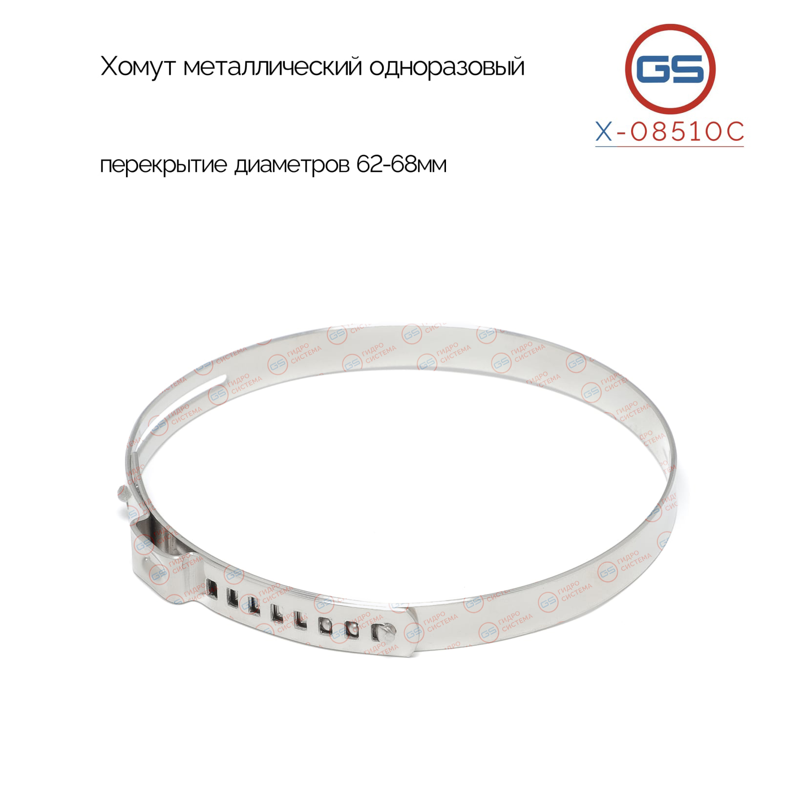 Наименование:Хомут металлический одноразовый, перекрытие диаметров 62-68мм