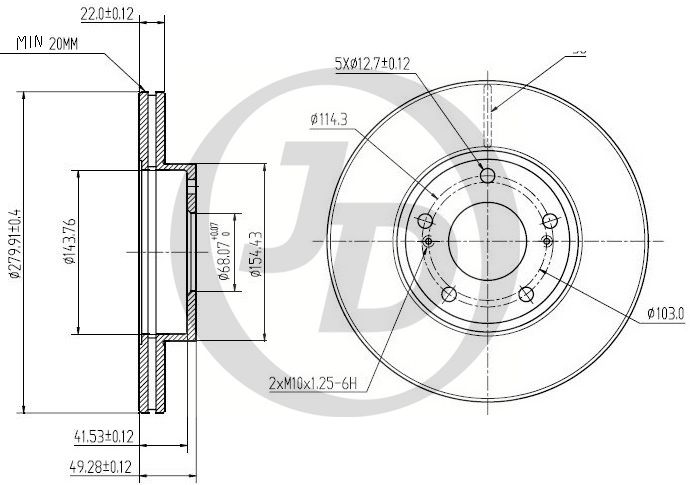 Наименование:Диск тормозной передний DF2574 (280x22) 5 отв