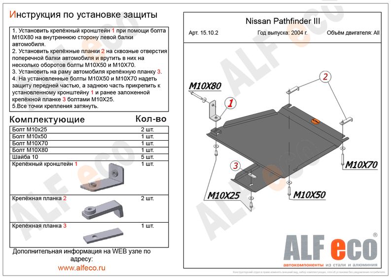 Наименование: Защита РК (сталь 2 мм) + комплект крепежа для Nissan Pathfinder (R51) 2004-2014 (V - 2.5, 4.0, 3.0d)