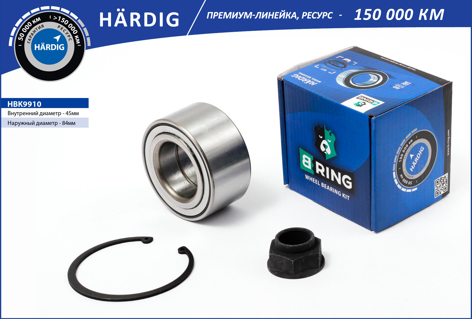 Наименование: Подшипник ступицы HONDA CR-V I-II (95-) (перед. компл.) (45x84x42/40) (HBK9910) B-RING HARDIG