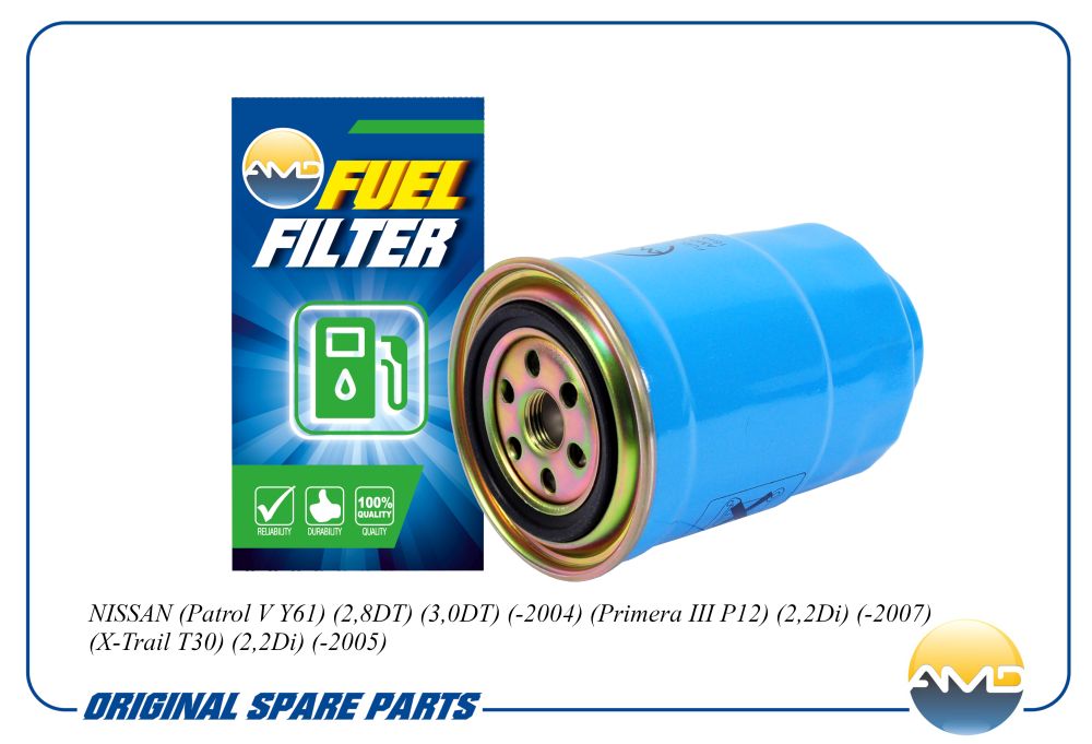 Фильтр топливный NISSAN Patrol V Y61, 2,8DT, 3,0DT, -2004, Primera III P12, 2,2Di, -2007, X-Trail T30, 2,2Di, -2005 AMDFF372