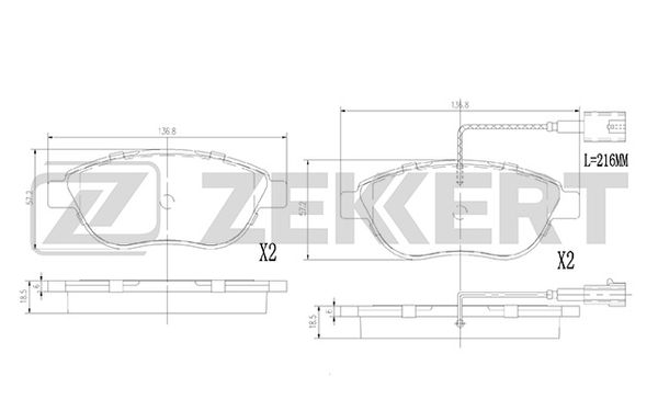 Наименование: Колодки тормозные Fiat Bravo (198) 06-, Doblo передние дисковые с датчиками (GDB1483) Zekkert