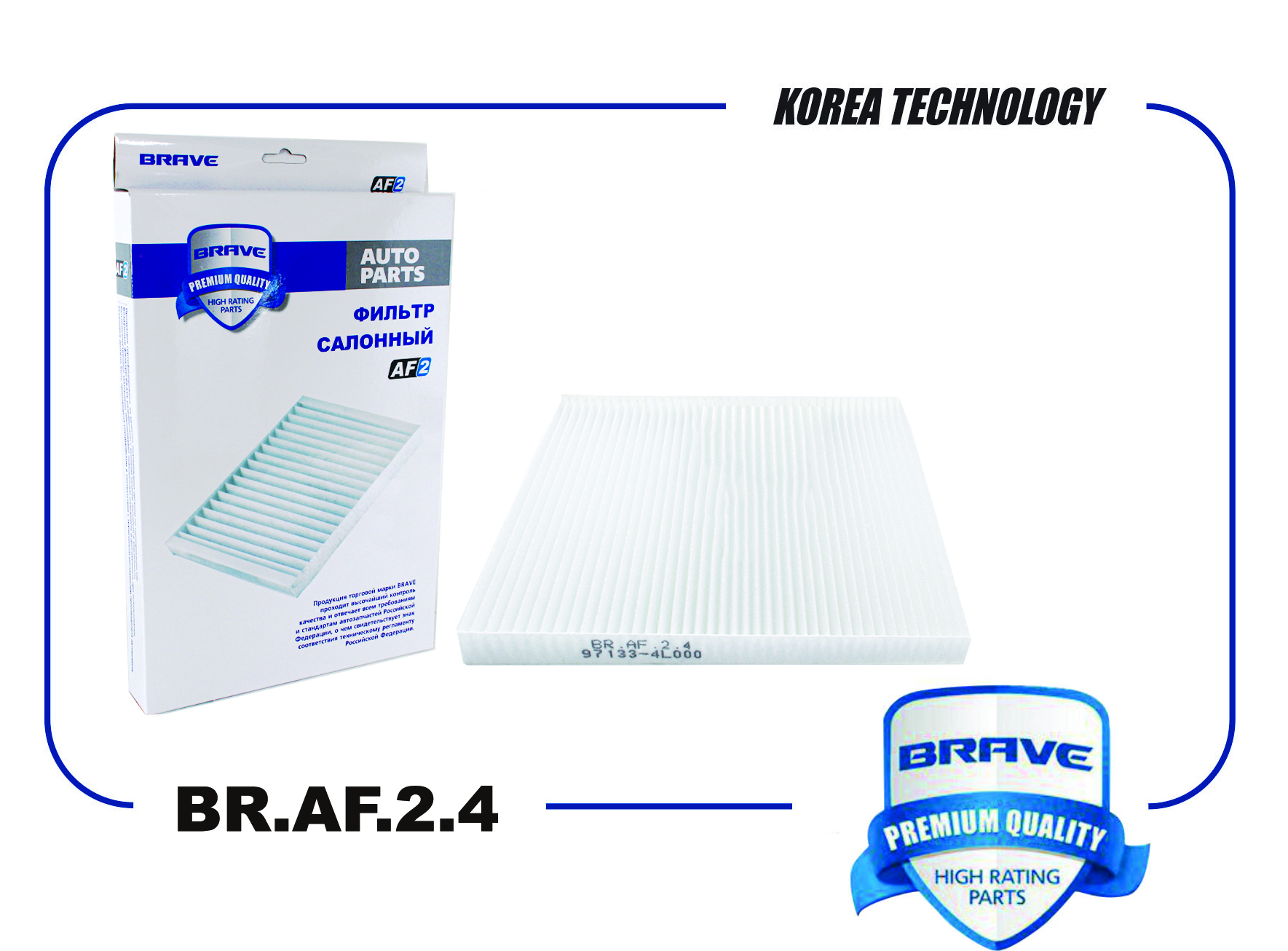 Наименование: Фильтр салонный BR.AF.2.4 97133-4L000 Solaris 2010-, KIA Rio 2011- BR.AF.2.4