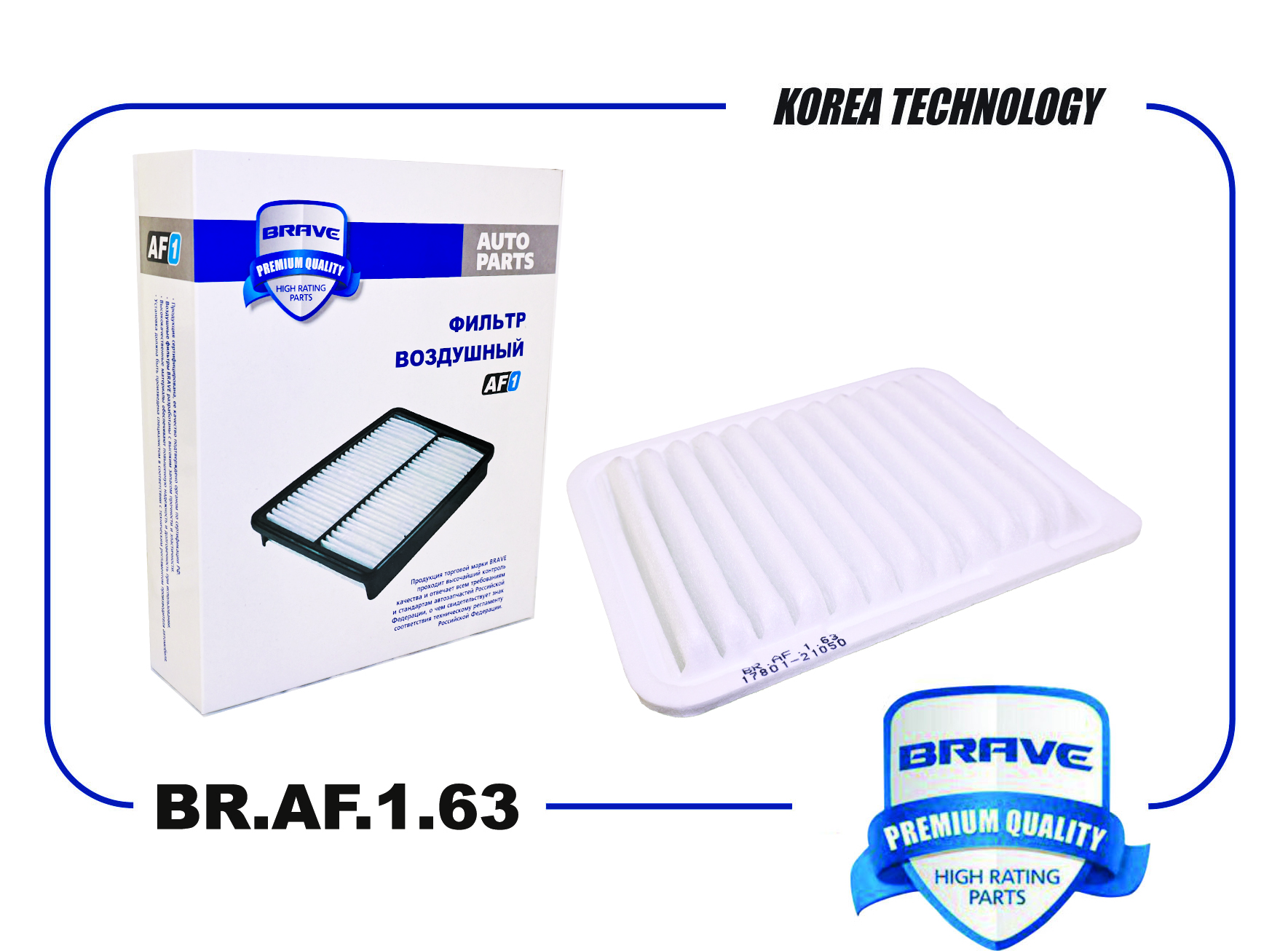 Фильтр воздушный BR.AF.1.63 17801-21050 Toyota Corolla E150/E180 06-,Auris 07-,Avensis T270