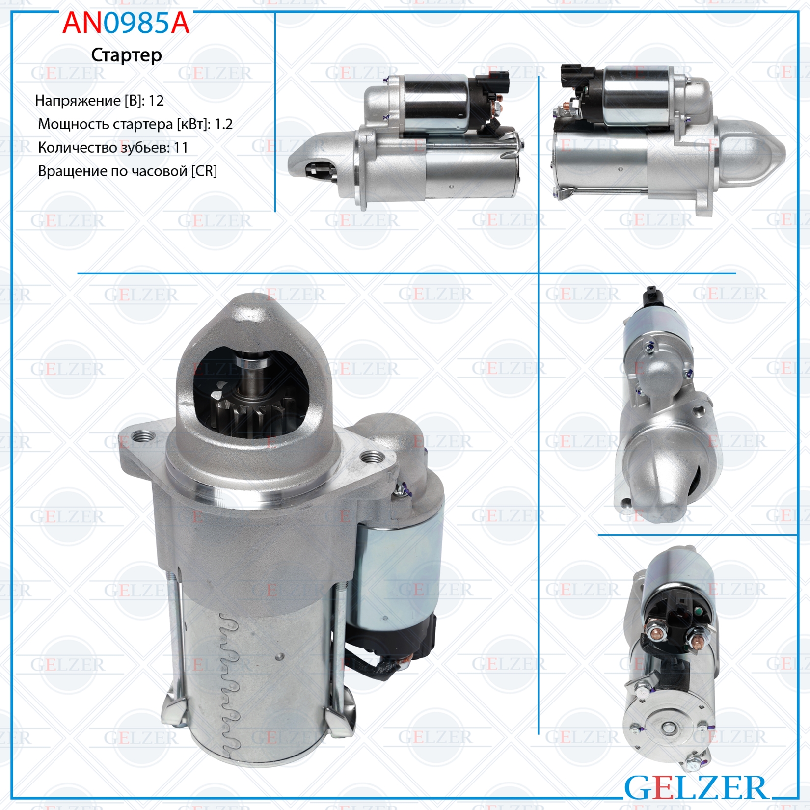 Наименование: AN0985A Стартер 12В / 1.2 кВт / CR / Hyundai, Kia