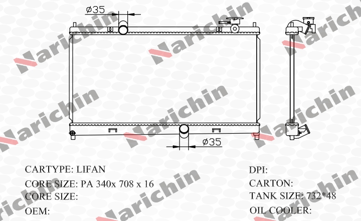 Компания NARICHIN производит свою продукцию под одноименным брендом на современных заводах Юго-Восточной Азии (Китай, Малайзия, Тайвань), качество производства на которых подтверждается сертификатами ISO 9001, ISO 14001, TUV. Часть продукции данных предприятий поставляется в том числе на конвейер автопроизводителей, таких как BYD, FOTON, LIFAN, JAC, GREAT WALL, CHANGAN, CHERY, а также по заказам BOSCH, DELPHI и др. Ассортимент NARICHIN включает в себя востребованные запасные части различных товарных групп для японского, корейского и европейского автопарков. Широко представлены детали ходовой части, расходные материалы, элементы системы охлаждения, резинотехнические изделия и др. Важным направлением развития является постоянное расширение производственной линейки.