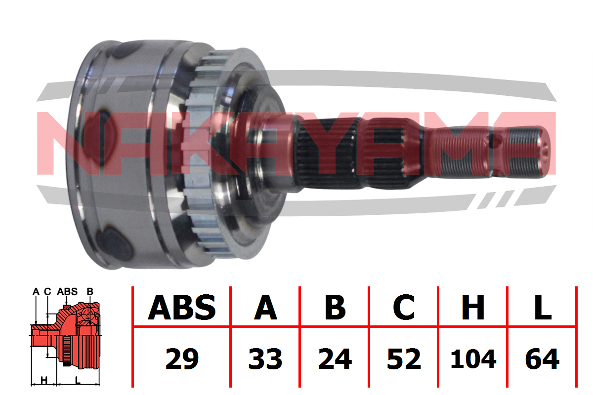 ШРУС внешн. к-кт OPEL CORSA C 1.7CDTI 00-, MERIVA 1.7CDTI 03- (33x24x168x52 ABS:29)