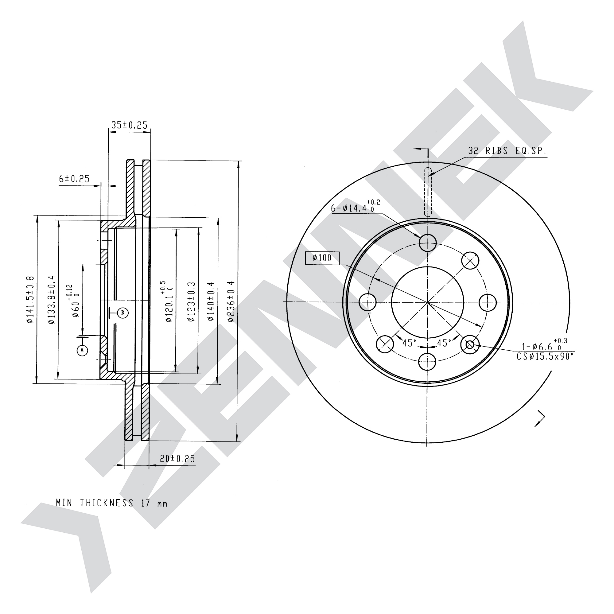 Диск тормозной передний CHEVROLET AVEO 05->, DAEWOO LANOS 97 ->