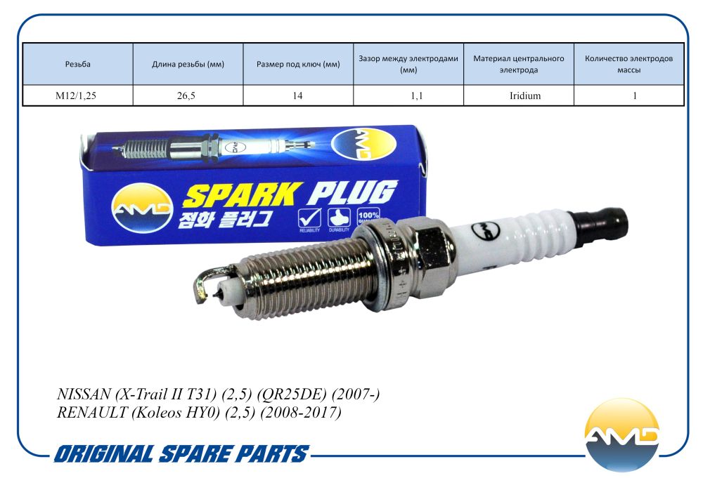 Наименование: Свеча зажигания 22401JA01B/DILKAR6A11/AMD.PL144 AMD
