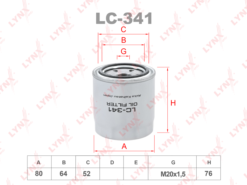 Фильтр масляный подходит для NISSAN Vanette 2.2 94-03/2.0T 03>, MITSUBISHI GTO 3.0-T 90-00/Pajero 3.0-3.5 90-05, ISUZU Aska 1.8-2.0 94-02 LC-341