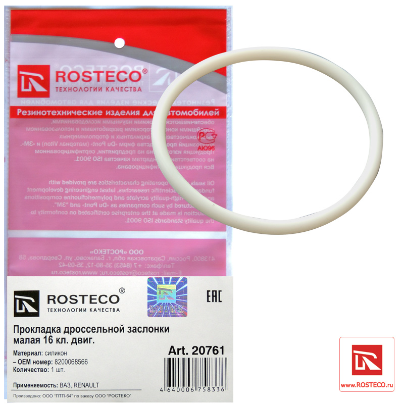 Наименование: Прокладка дроссельной заслонки LADA Largus, RENAULT, малая, силикон. 8200068566 'ROSTECO'