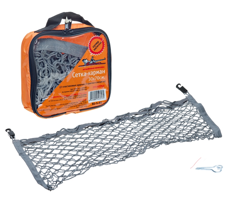Сетка карман 30*70см (2 пластиковых крючка, 2 крючка-самореза) AS-S-01