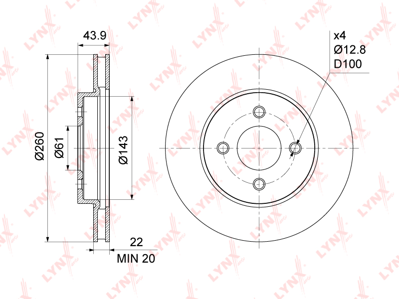 Диск тормозной вентилируемый (260x22) / перед