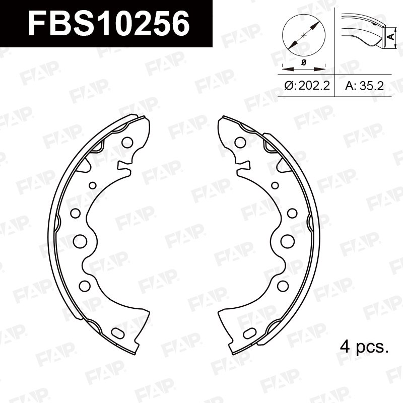 **Тормозные колодки FAP проходят точную аркообразную шлифовку, чтобы гарантировать идеальное соответствие каждой тормозной колодки тормозному барабану, обеспечивая оптимальные тормозные характеристики. Компания также предоставляет крепежные элементы, включая рычаги и штифты, для вашего удобства.