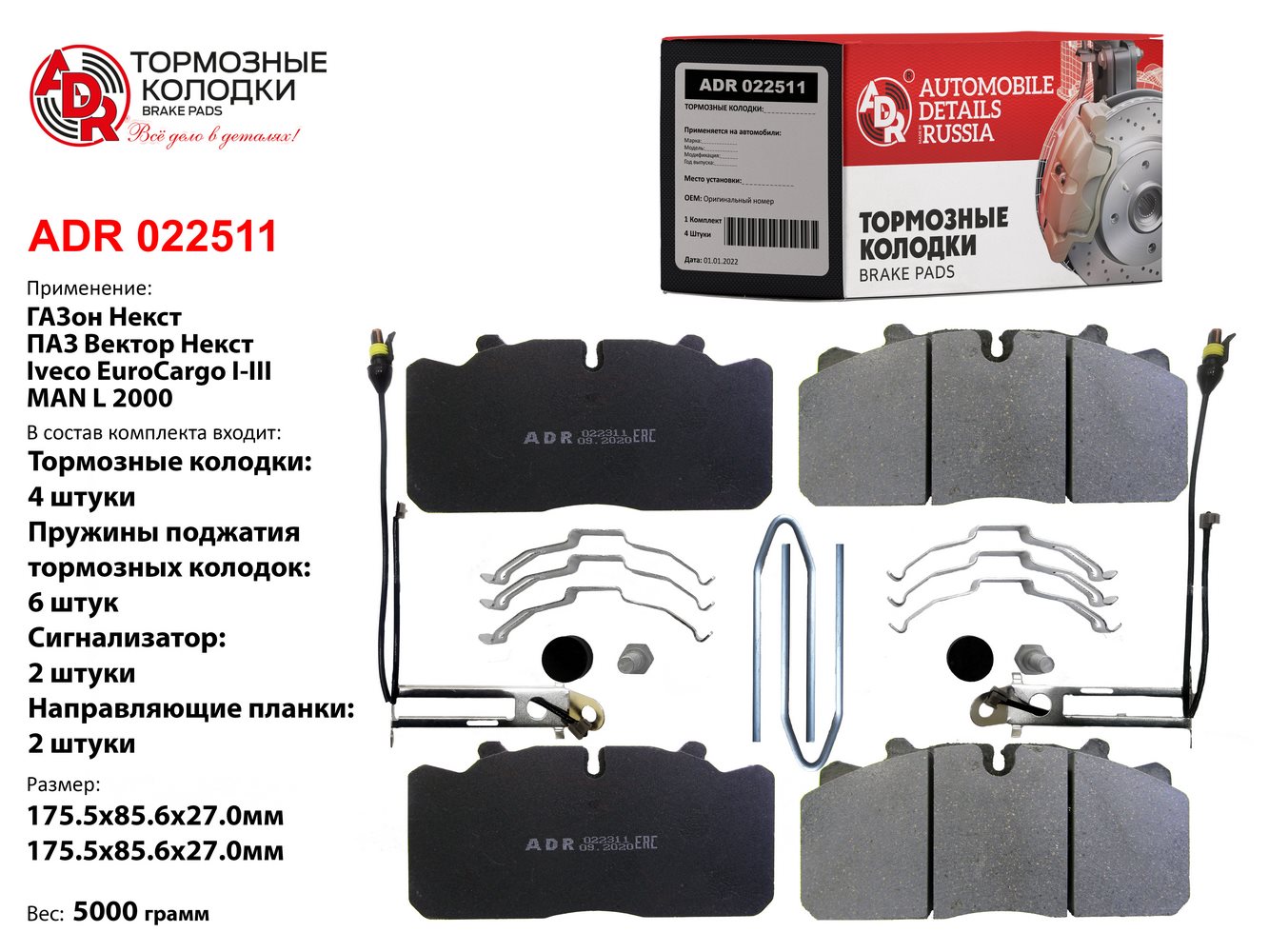 Наименование: колодка ADR для а/м ГАЗон Next/ПАЗ Вектор NEXT 14- перед./зад. с уст.комплектом (12 деталей) и 2 эл