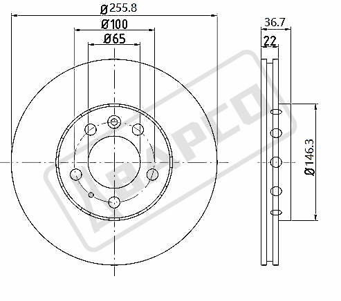 Наименование: Диск тормозной VW Polo Sedan 10- D=256мм передний вентилируемый