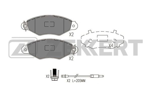 Колодки тормозные Renault Kangoo 97-, Nissan Kubikstar передние дисковые с датчиком Zekkert