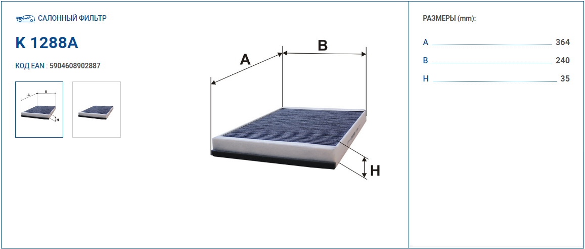 Наименование: фильтр салона! угольный\ MB Sprinter, VW Crafter all 06>