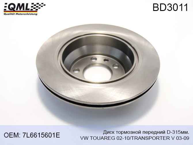Наименование: BD3011 Диск тормозной VW TOUAREG 02-10/TRANSPORTER V 03-09 передний D315мм. 7L6615601E