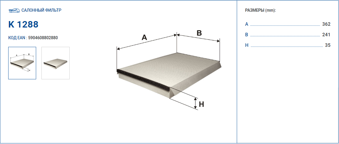 Наименование: фильтр салона! 354x235x35\ MB Sprinter, VW Crafter all 06>