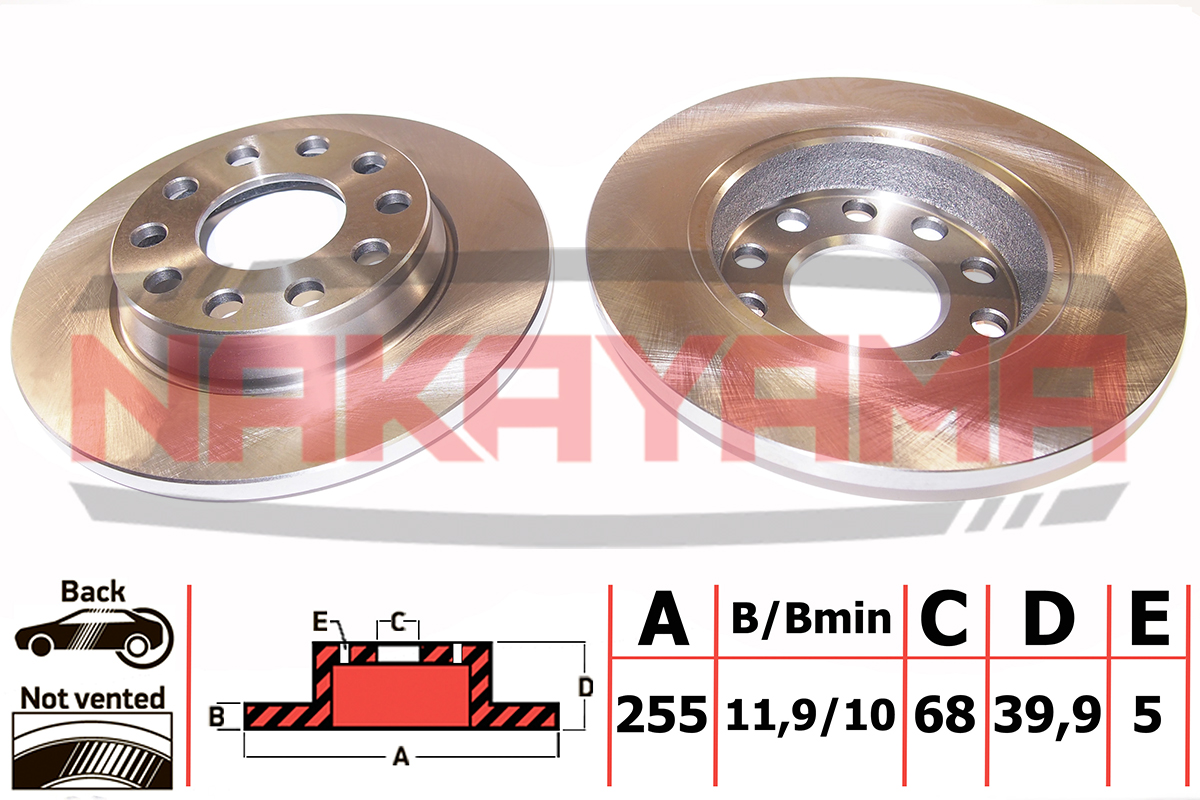 Наименование:Торм.диск задний (не вент.) AUDI A4 (II) 2.4i V6 30V 01-04 ((255X12X5)