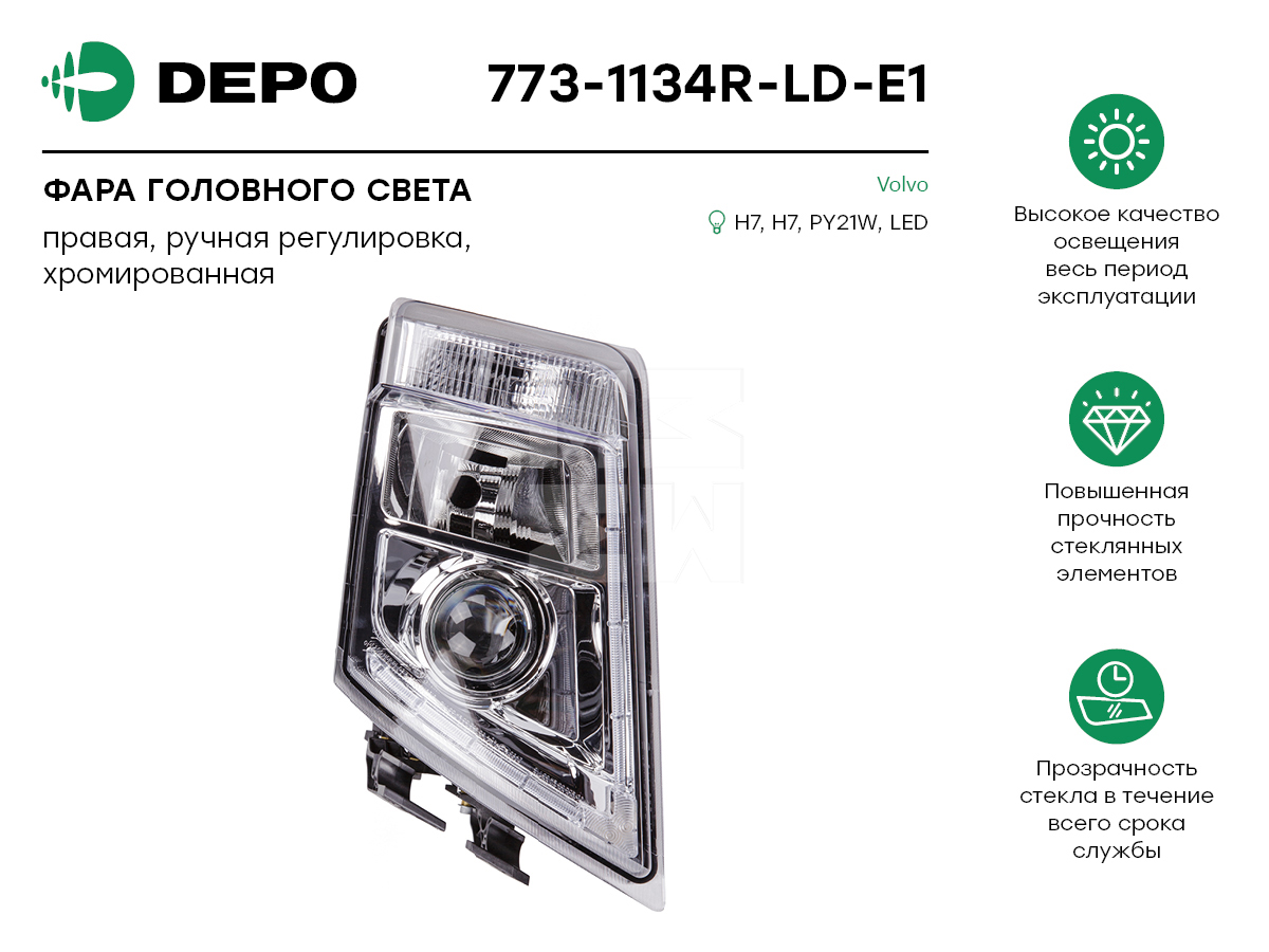 Наименование: фара! правая H7/H7/PY21W/LED отраж светлый мех. регулировка \ VOLVO FM/FH 05>
