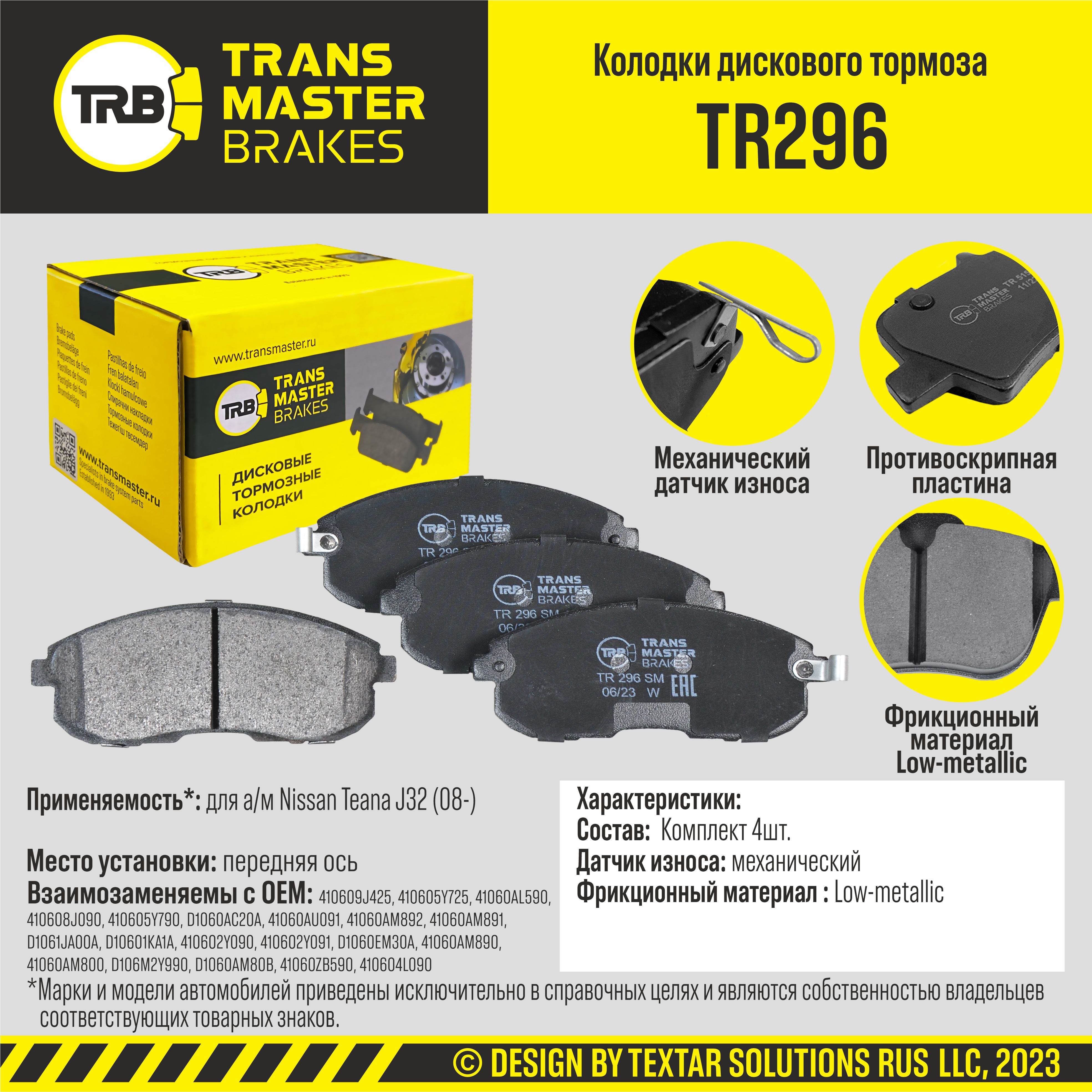В 2023 году в рамках ребрендинга была обновлена упаковка, теперь детали TRANSMASTER BRAKES®(TRB®) продаются в более привычной для европейских потребителей желтой упаковке.