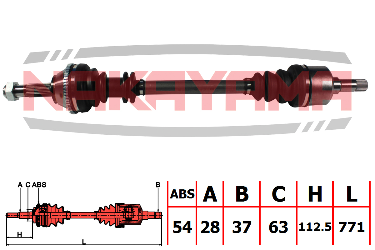 Вал приводной, перед. левый FIAT Ducato, PEUGEOT Boxer 1.9-2.5D/TD ME5/ML 94- 1.4Q колеса R15 (28x37