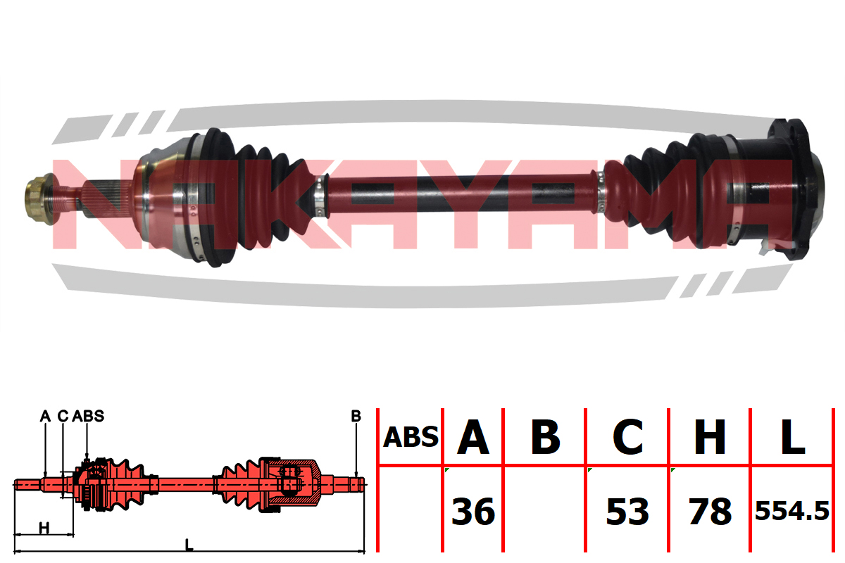 Наименование: Вал приводной, перед. левый VW Bora (1J2)/(1J6), Golf IV (1J1), Golf Variant IV (1J5), New Beetle (9