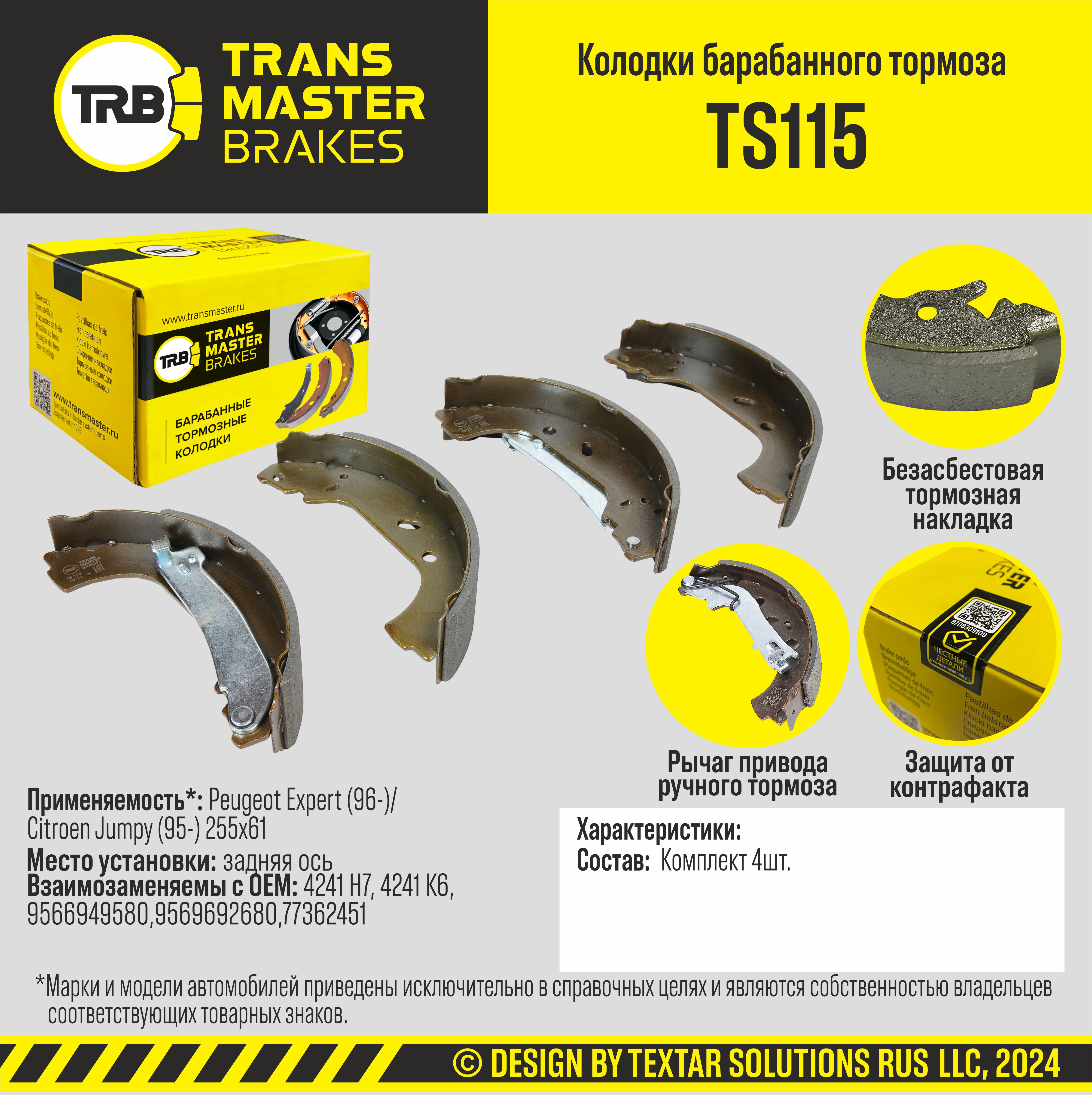 В 2023 году в рамках ребрендинга была обновлена упаковка, теперь детали TRANSMASTER BRAKES®(TRB®) продаются в более привычной для европейских потребителей желтой упаковке.