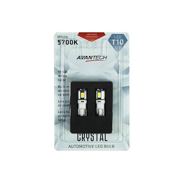 Наименование: Лампа светодиодная Avantech 12V LED T10 W5W 5700K (резистор), комплект 2 шт.