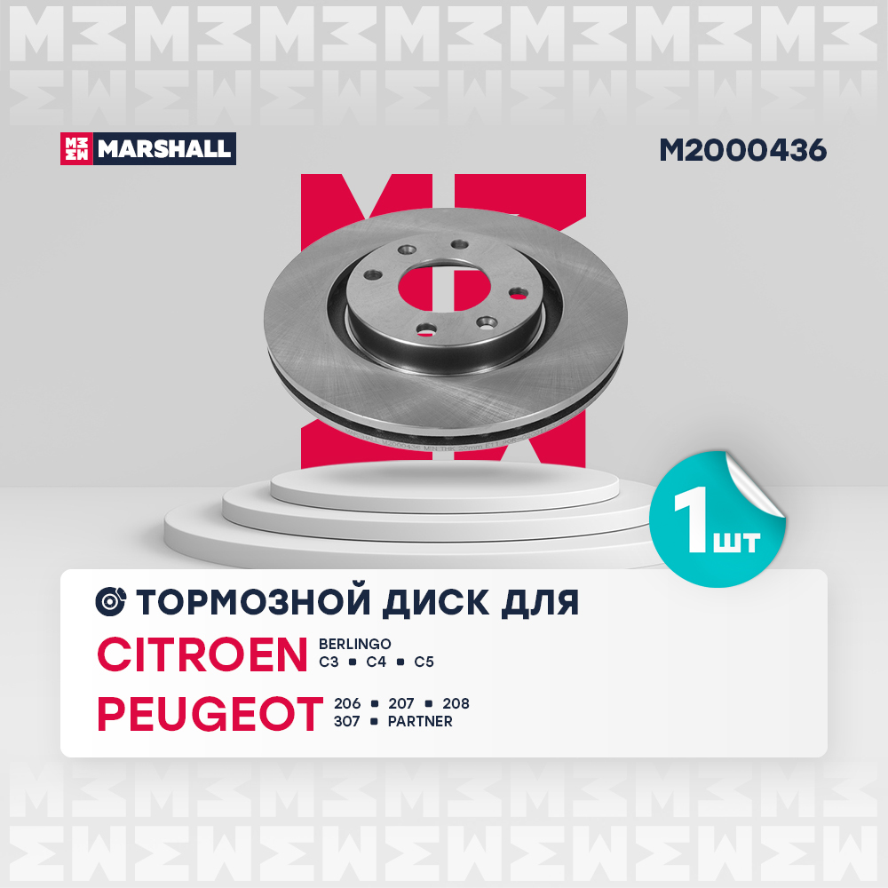 Наименование: Тормозной диск передн. Citroen Berlingo I 96- C4 I II 04- Peugeot 206 00- 207 06- 208 I II 12- M2000436