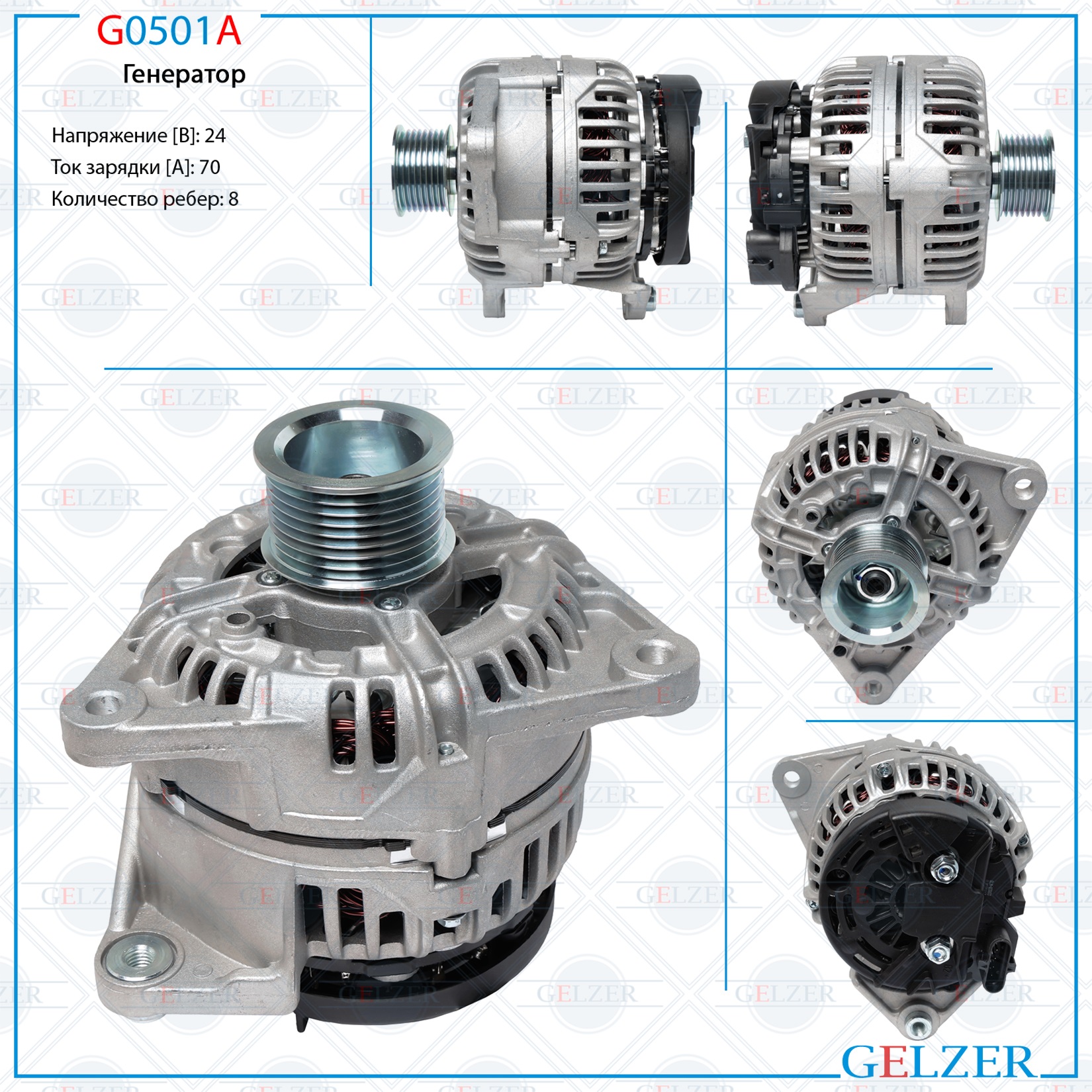 G0501A Генератор 24В / 70А / 8РК / CASE, Iveco, New Holland