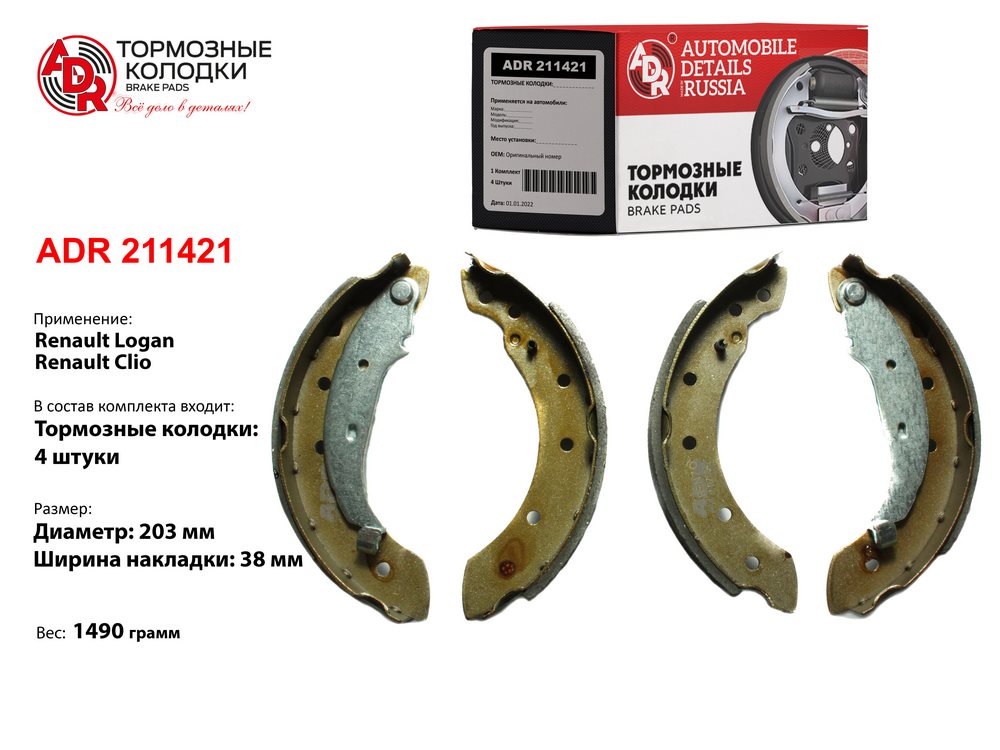 Наименование: Колодки тормозные Renault Logan 04- (+ABS), Peugeot 206 98-, Lifan Breez задние барабанные ADR