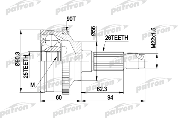 ШРУС наружн к-кт 26x56x25 ABS:90T MAZDA: 626 III 87 - 92, 626 III Hatchback 87 - 92, 626 III Station