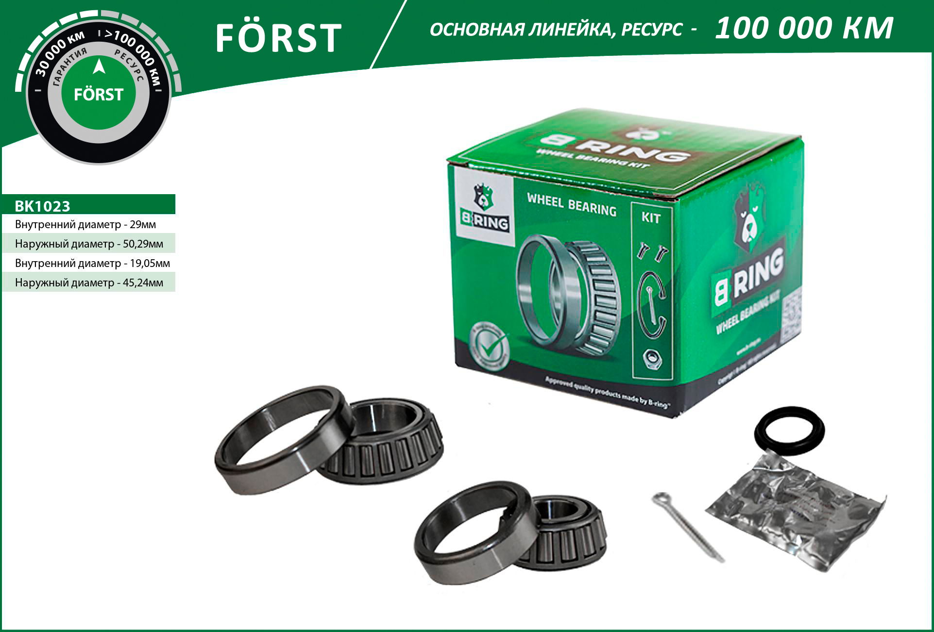 Подшипник ступицы AUDI A4 (95-) (задн. компл.) (29x50.3x14.2/19x45.2x15.5) (BK1023) B-RING FORST