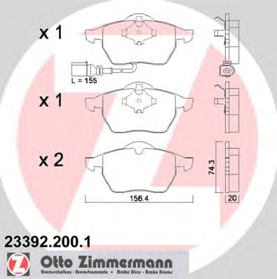 Наименование:колодки дисковые !перед. 156x74x20 \ Audi A3 1.8T/1.9TDi 96>,VW Golf IV 1.8T/2.3 97-05