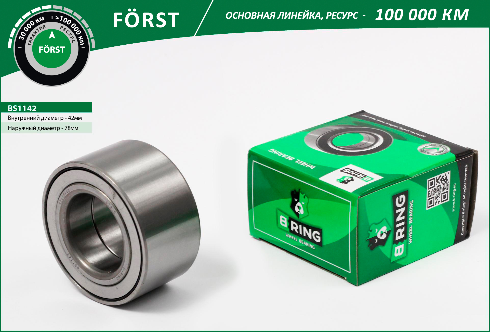 Подшипник ступицы HYUNDAI Elantra IV (HD) (05-) (перед. компл.) (42x78x40) (BS1142) B-RING FORST