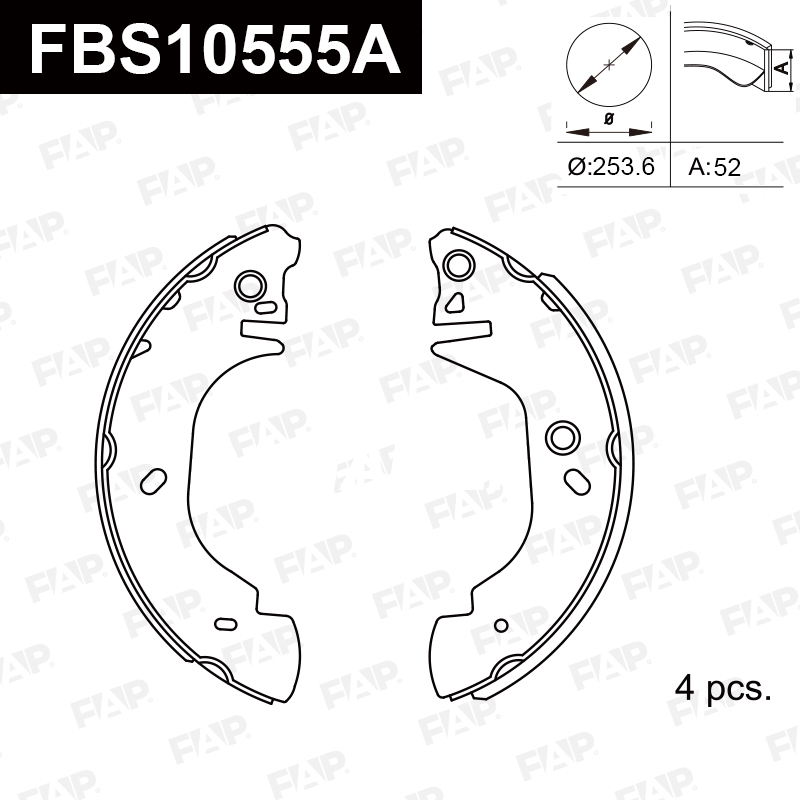 **Тормозные колодки FAP проходят точную аркообразную шлифовку, чтобы гарантировать идеальное соответствие каждой тормозной колодки тормозному барабану, обеспечивая оптимальные тормозные характеристики. Компания также предоставляет крепежные элементы, включая рычаги и штифты, для вашего удобства.
