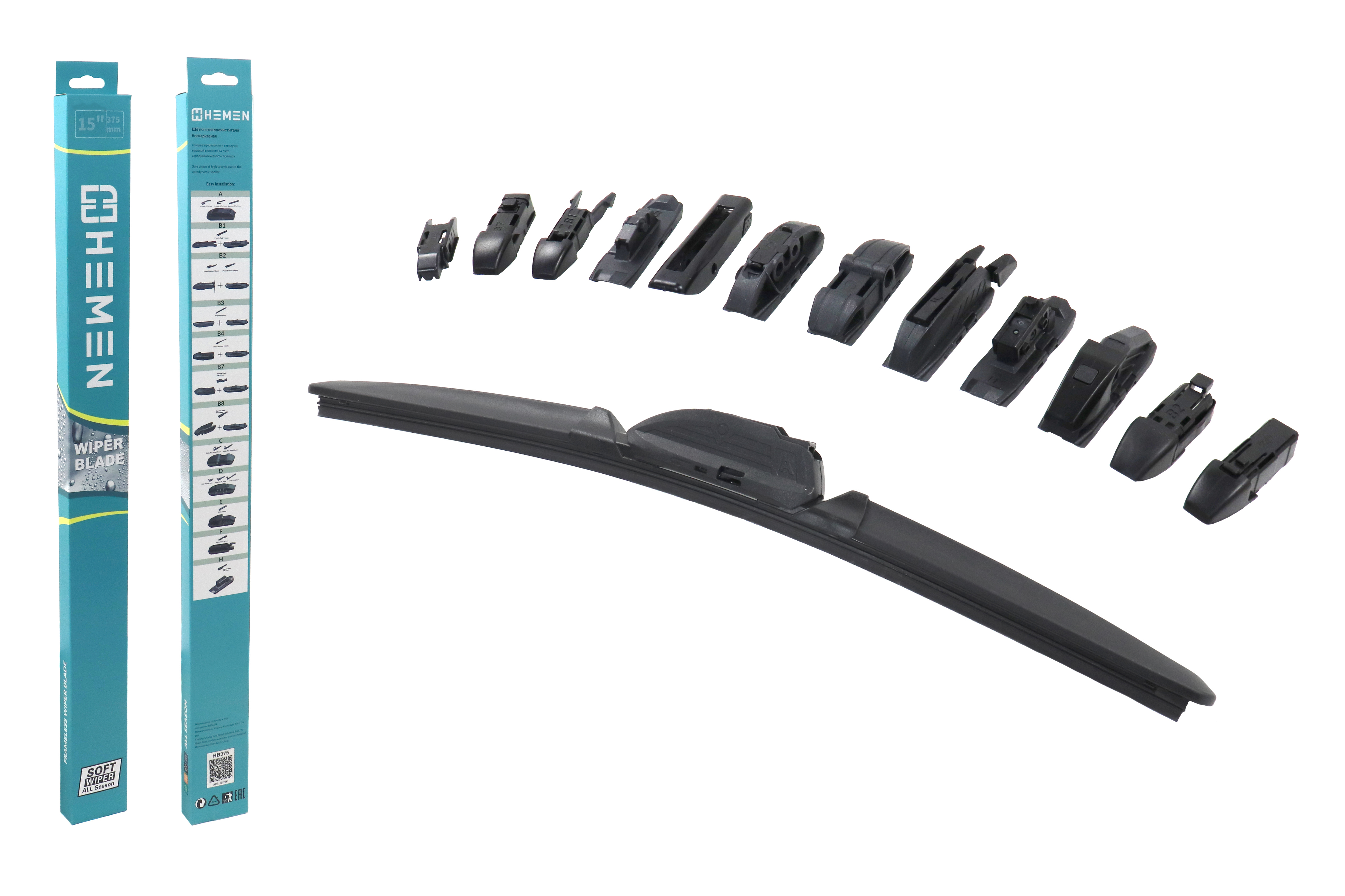 Наименование: Щётка стеклоочистителя бескаркасная HEMEN 375 мм + 12 адаптеров (HB375)