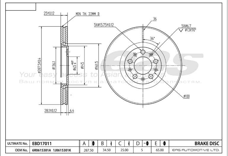 Компания EAS устанавливает высокие требования к поставляемой продукции на всех этапах производства, начиная с момента ее моделирования.Кроме того, вся готовая продукция проходит не выборочный, а 100% контроль качества. Этот фактор делает продукцию EAS действительно достойным выбором.Тщательно проработанный дизайн, стабильно высокое и контролируемое качество материалов, изготовление на современных предприятиях – гарантия эффективной и безупречной эксплуатации автозапчастей EAS.