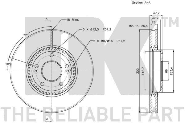 Наименование: 203422NK диск тормозной передний! 300x28 H47.8\ Hyundai Sonata V 3.3 05>