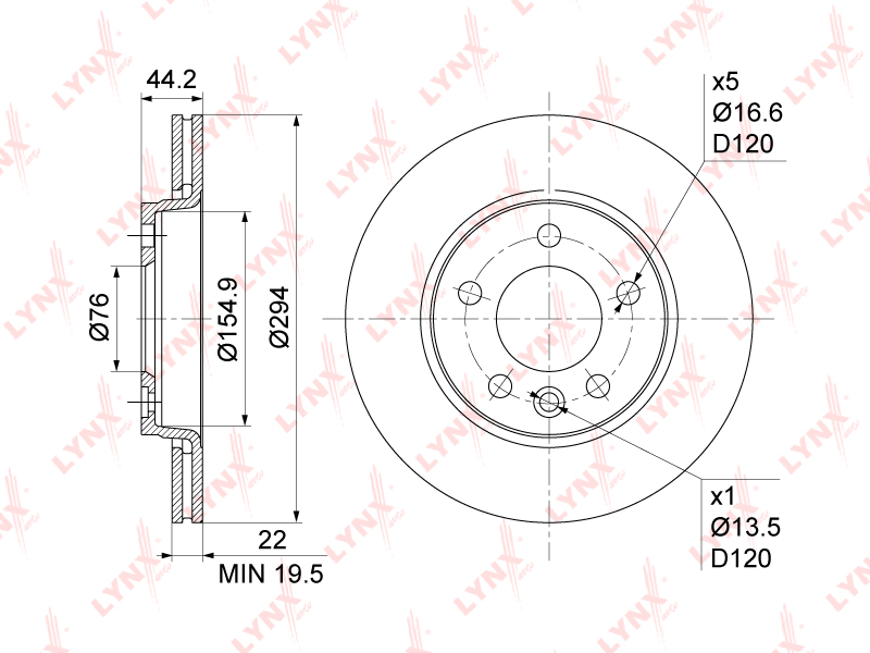 Диск тормозной задний (294x22) подходит для VW Transporter V-VI 1.9D-3.2 03> BN-1211