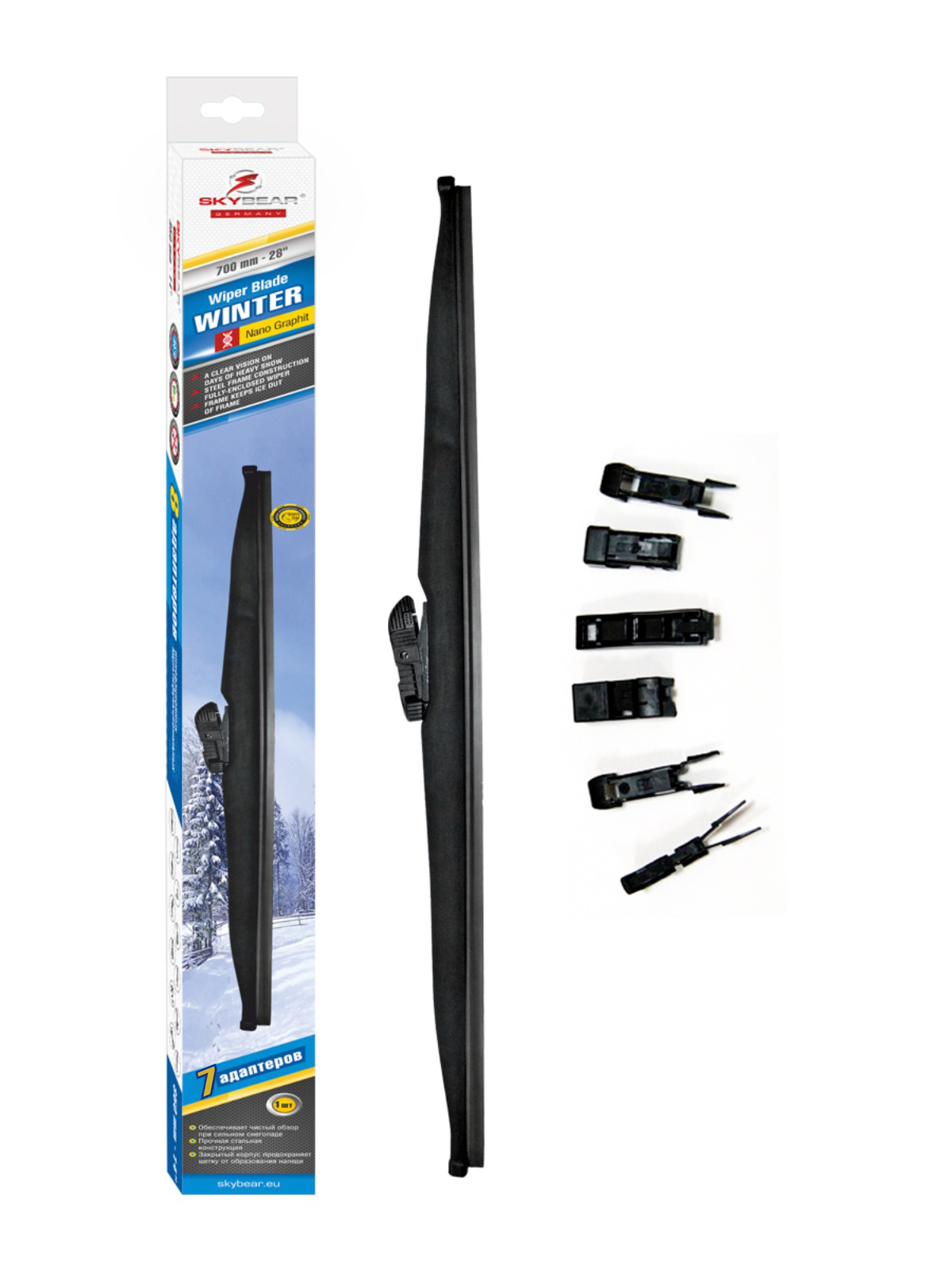 Наименование: Щетка стеклоочистителя 700 мм/28' зимняя SKYBEAR WINTER 8 адаптеров