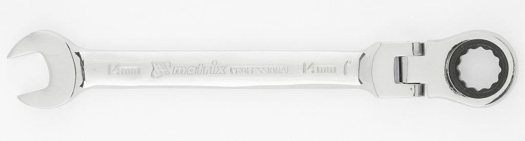Ключ комбинированный трещоточный, 14мм, CrV, шарнирный, зерк.хром