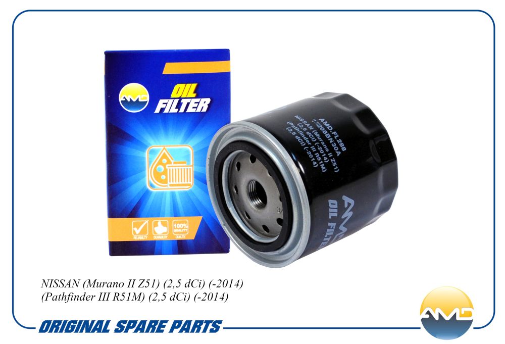 Фильтр масляный NISSAN Murano II Z51, 2,5 dCi, -2014, Pathfinder III R51M, 2,5 dCi, -2014 AMDFL288