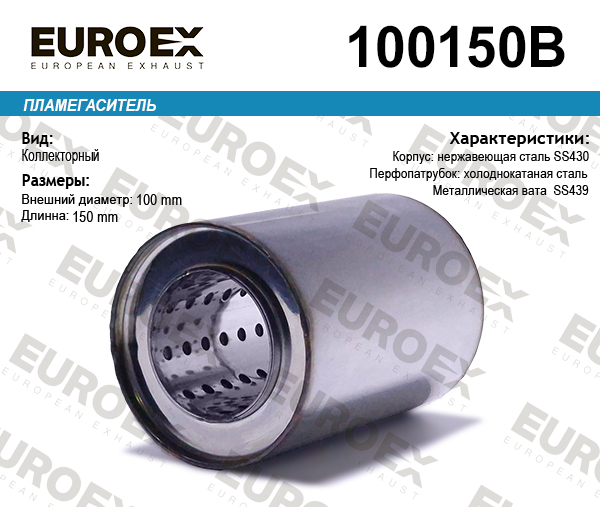 Наименование: Пламегаситель коллекторный 100x150x57 (диаметр трубы 57мм, общая длина 150мм диаметр бочонка 100мм)