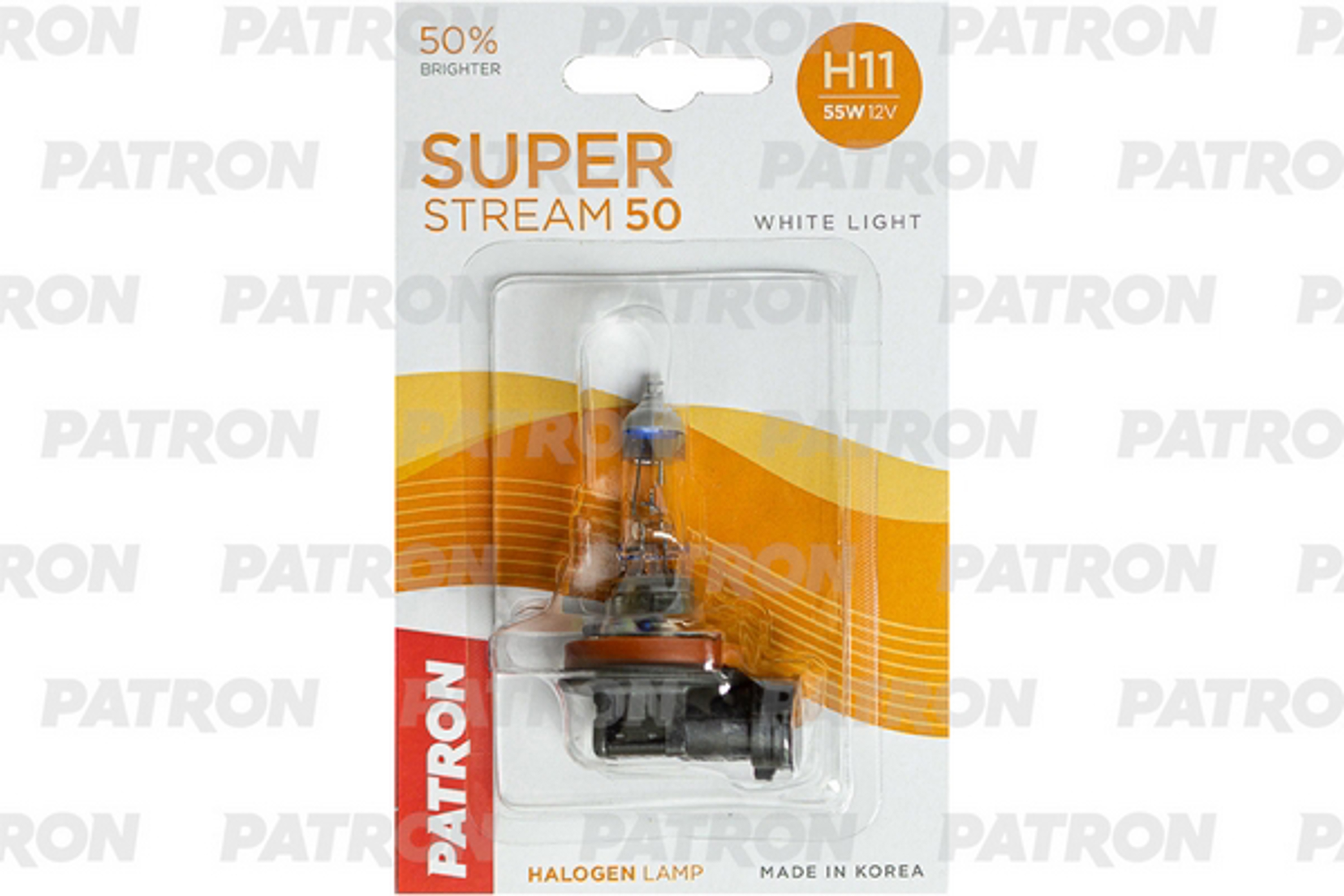 Наименование: Лампа галогенная блистер 1шт H11 12V 55W 3400K PGJ19-2 Super Stream 50 (+50% яркости, стандартный св