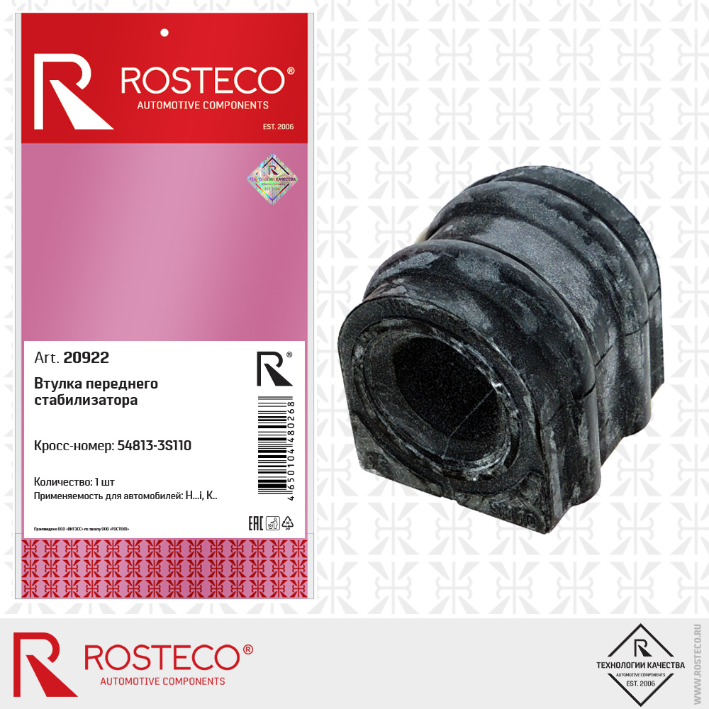 Втулка стабилизатора HYUNDAI, KIA, переднего. 54813-3S110 'ROSTECO'