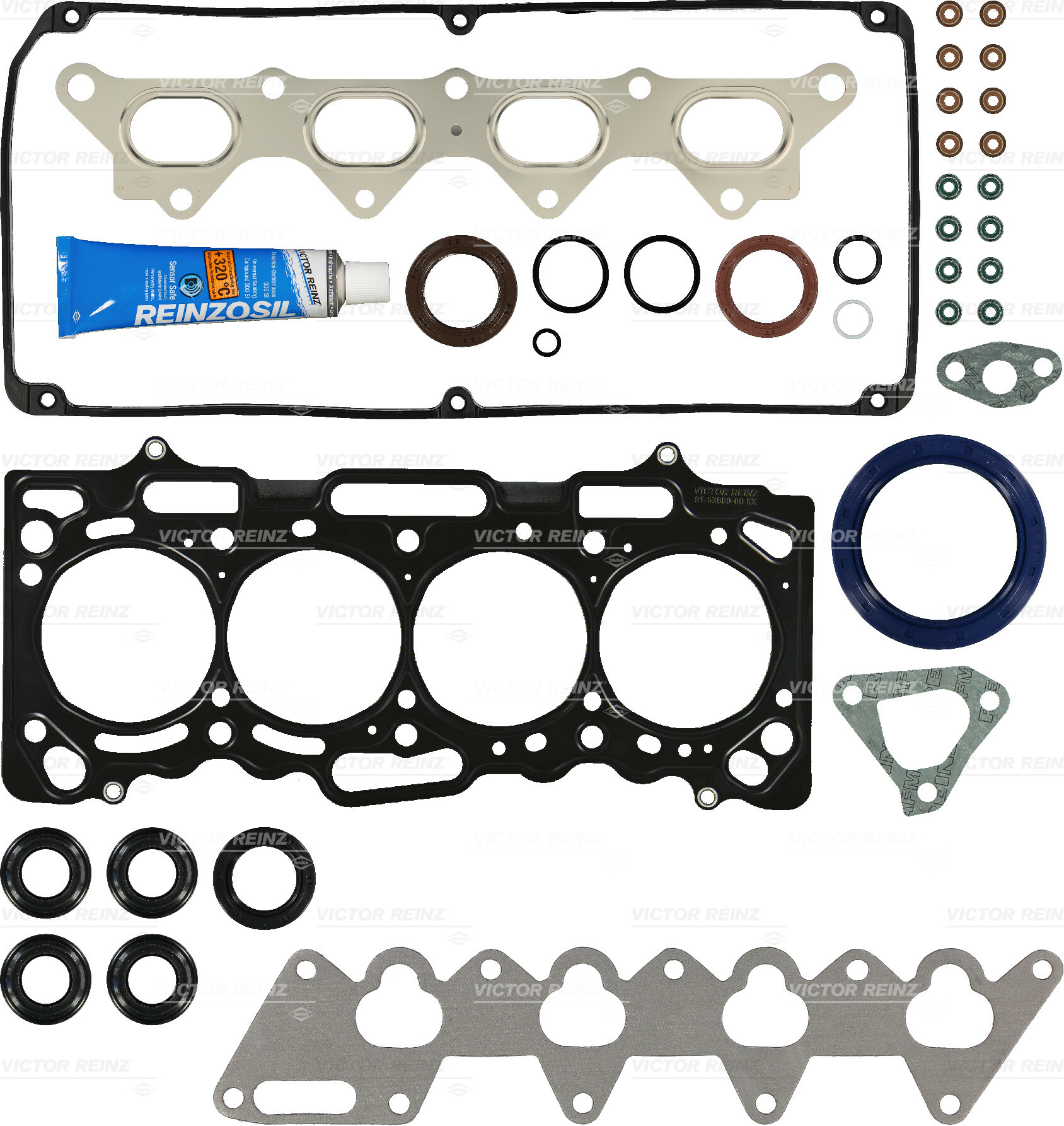 Victor Reinz – коллаборация двух предприятий: немецкого Reinz и американского Victor. С 1993 года компания она становится частью американского Dana и становится одним из самых крупнейших мировых производителей автомобильных уплотнителей. Теперь за корпорацией Dana 90 предприятий, работающих в 25 странах мира. Victor Reinz осуществляет поставки оригинальных комплектующих для Fiat, Ferrari, VW, Ford, Volvo, Renault и ряда других автоконцернов. Продукция соответствует требованиям DIN EN ISO 14001 и ISO/TS 16949.
